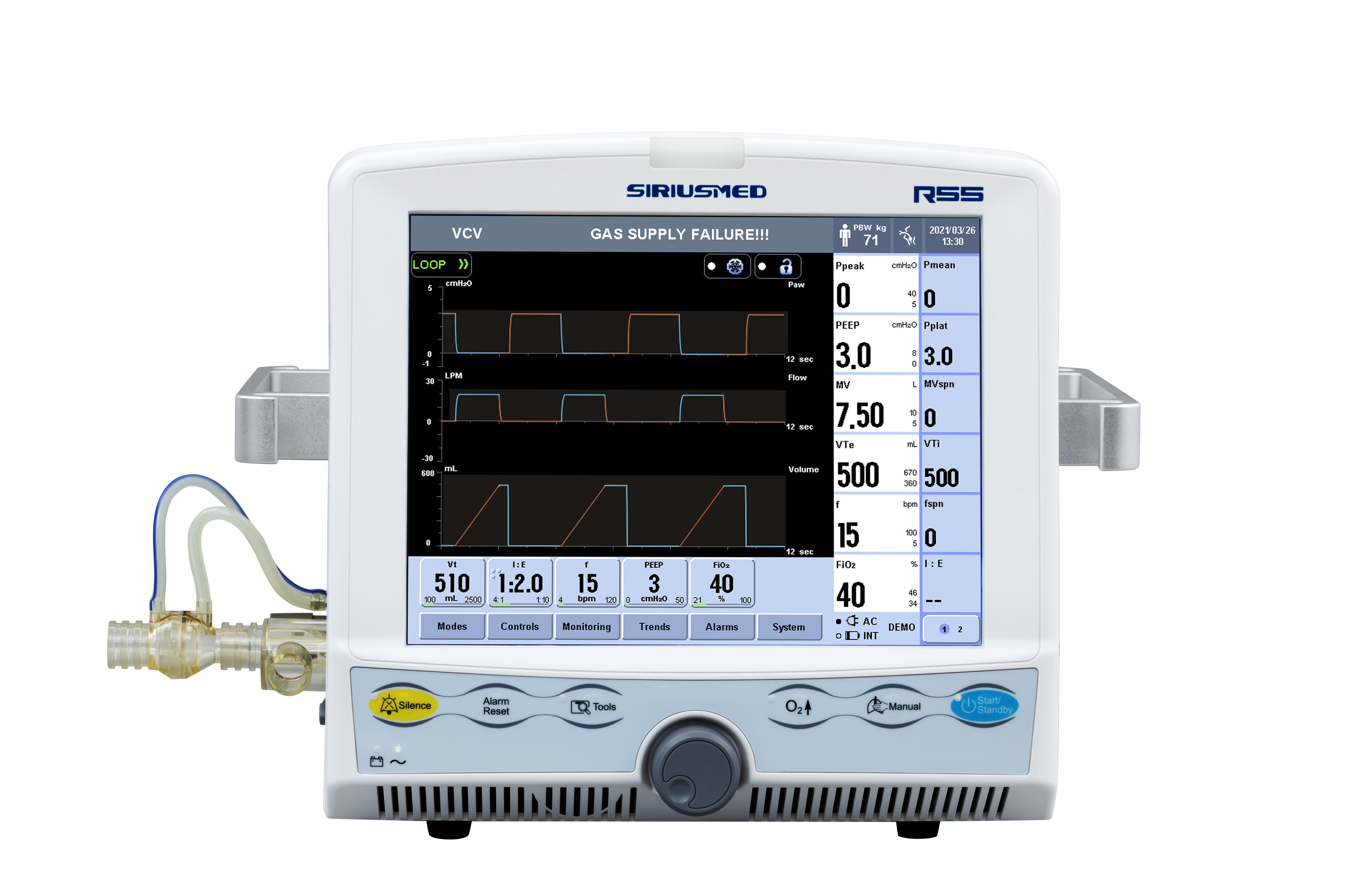 حجم المد والجزر تردد الجهاز التنفسي وقت الشهيق وقت حبس النفس اثار الضغط اثار معدل التدفق زقزقة دعم الضغط التحكم في الضغط مستوى ضغط مرتفع مستوى ضغط منخفض تركيز الأكسجين 100٪ O2 فخذ T- منخفض تجميد عقد الزفير عقد شهيق إلهام يدوي |